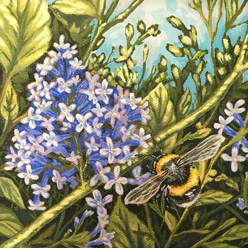 Experiencing bees buzzing plant to plant, the glow of a sunset at the end of A hard day, or the sweetness of delicate petals on a humble flower. No matter what I Paint, my goal is to emphasizes the joy found in the routines of every day life.